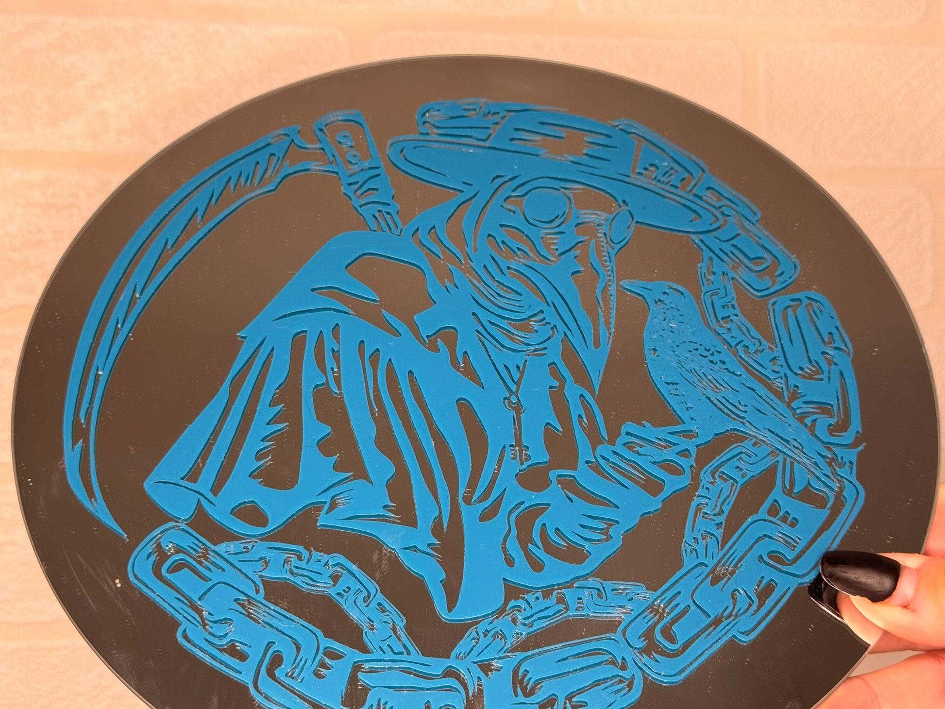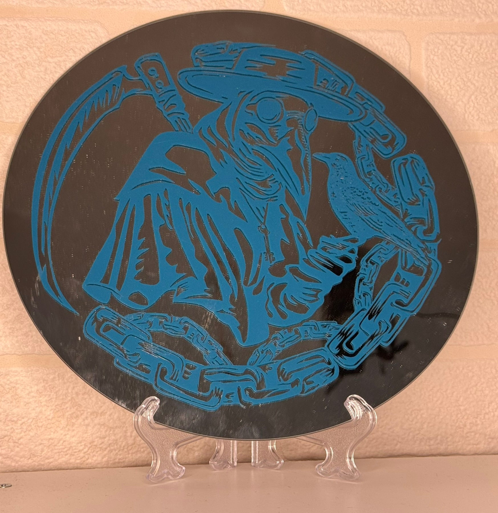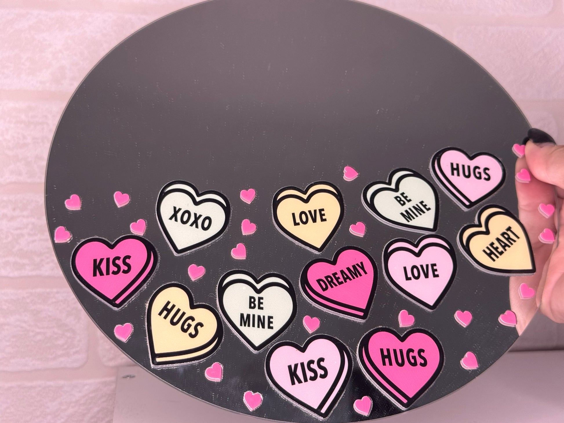 Add a splash of charm to any room with this circular mirror featuring playful vinyl decal details. Its cute and unique design brings fun and personality to your space while reflecting light and life. Perfect for brightening up your wall with a whimsical touch.